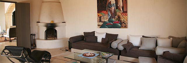 Enjoy this modernistic Kasbah in the heart of the Essaouira countryside. Boasting unobstructed panoramic views, a private heated swimming pool in its own gardens, an indoor fireplace, 5 luxury bedrooms and your own friendly staff to cook and care for your needs.